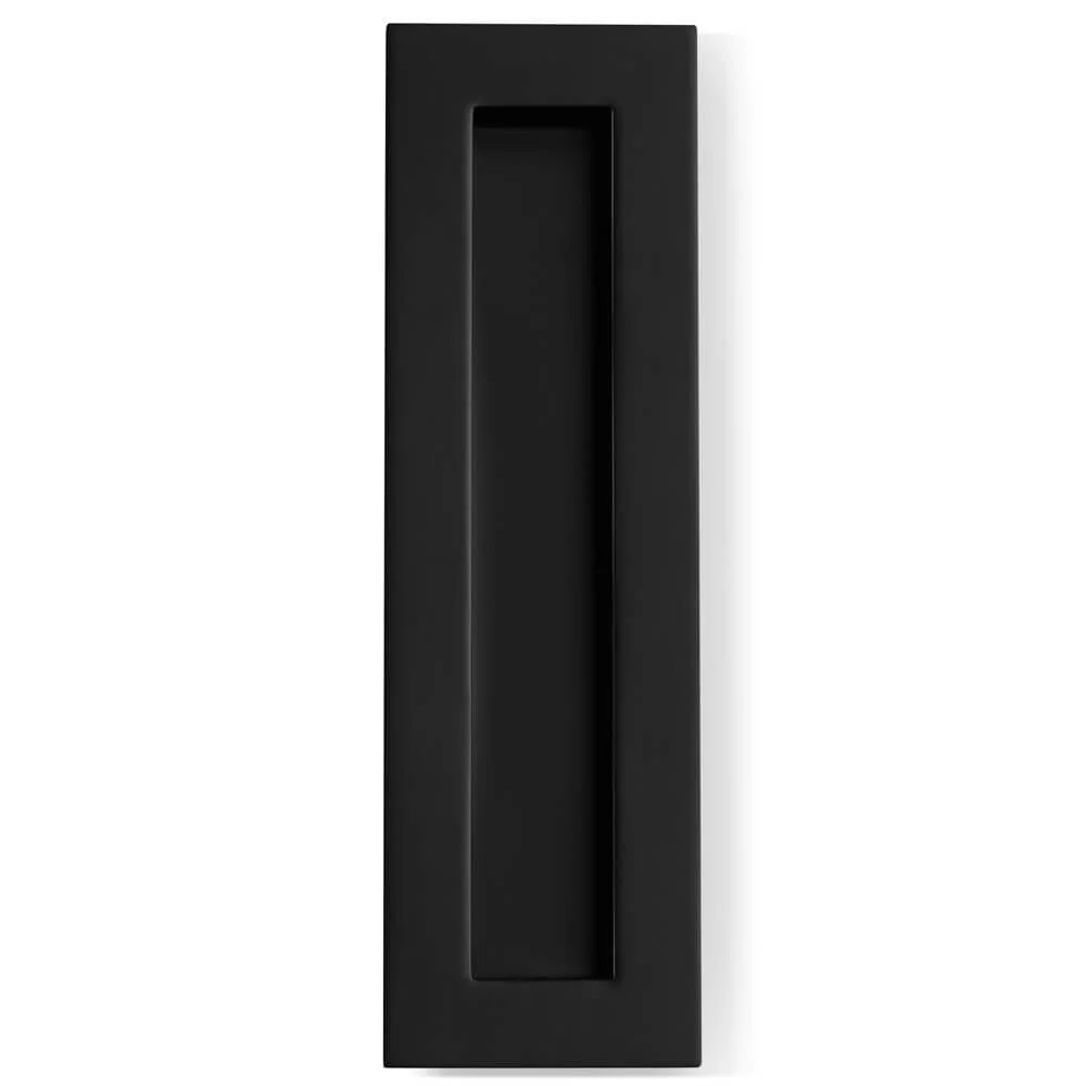 Sleek stainless steel flush handle in classic black finish. Designed for modern bathrooms and kitchens, this durable handle offers a minimalist aesthetic that complements contemporary décor. The smooth, recessed design prevents snagging and is easy to clean. Perfect for cabinets, or drawer applications where a refined, space-saving solution is needed. Built to withstand daily use with corrosion-resistant materials.